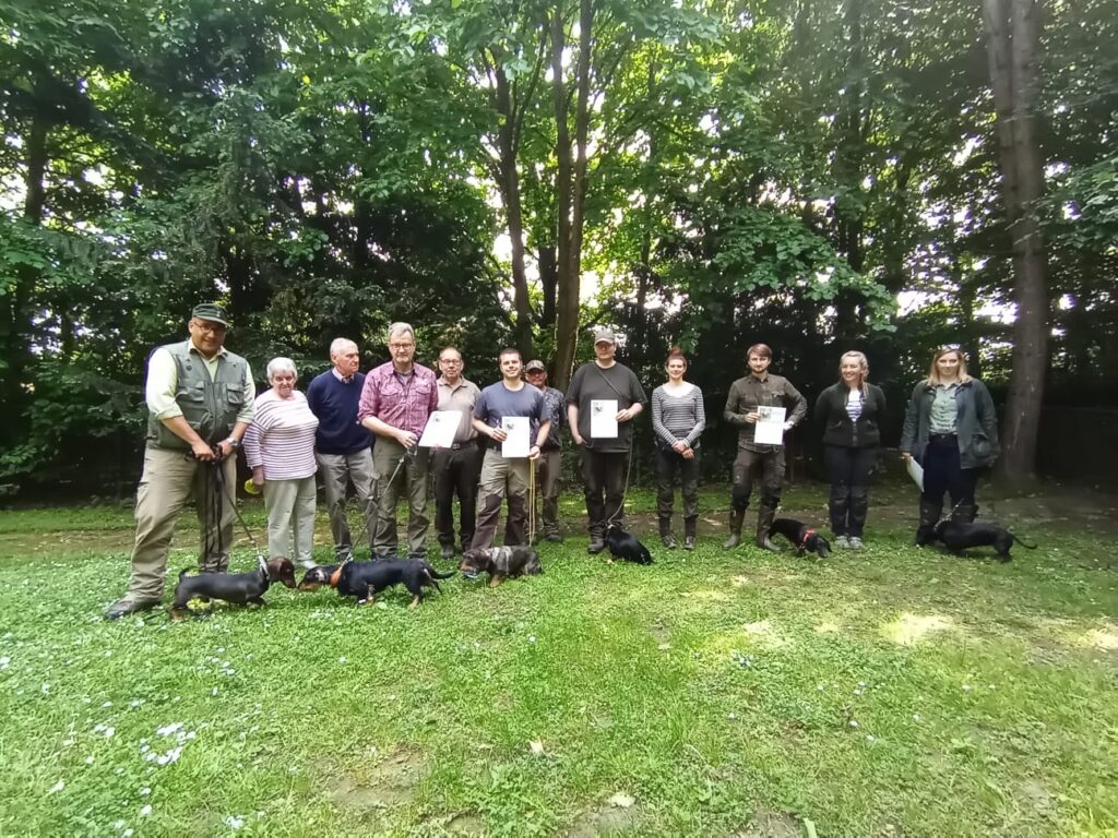 Bei sonnigem und trockenem Wetter führten wir unsere Schweißprüfung durch. Die Fährten waren anspruchsvoll, die Hundeführer hatten ihre Teckel sehr gut eingearbeitet und alle fünf Teckel bestanden die Prüfung im 1. Preis.