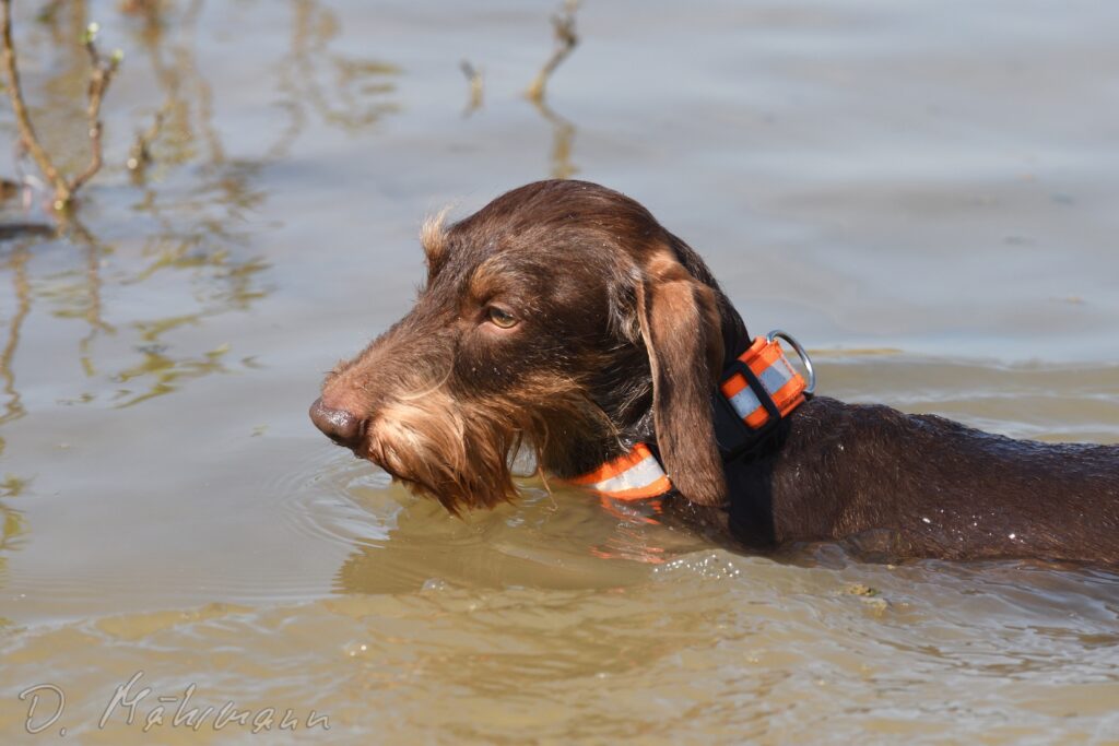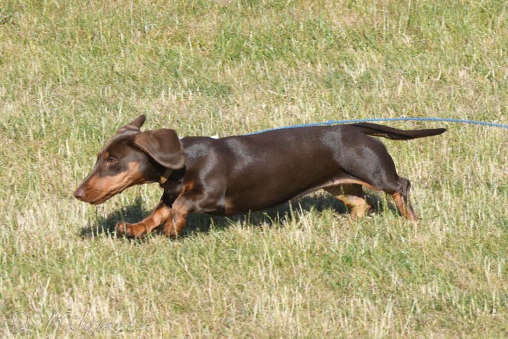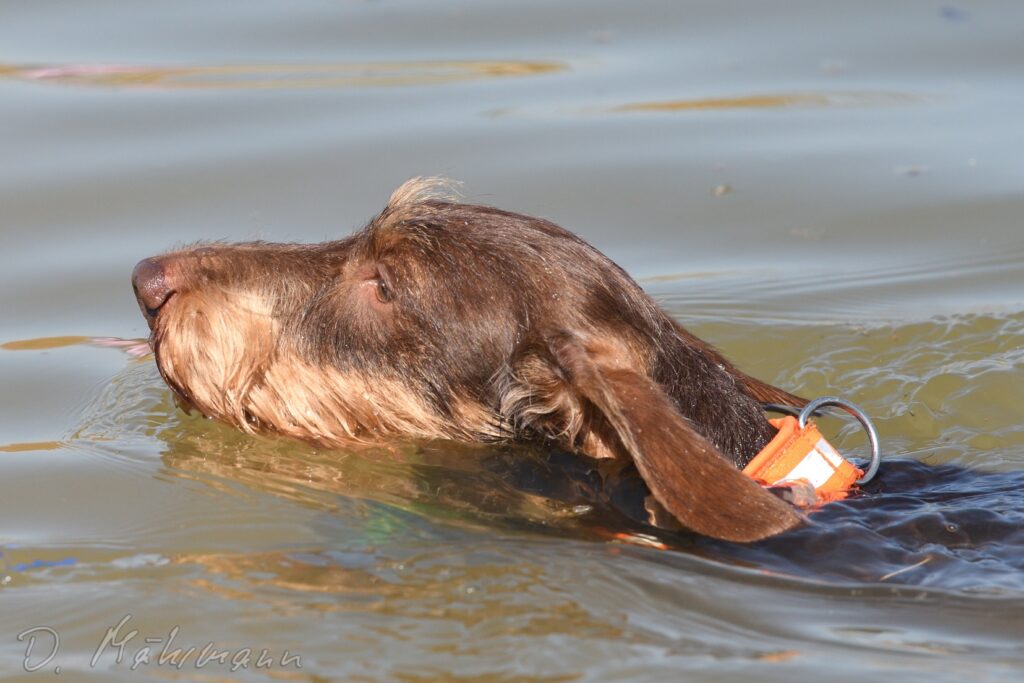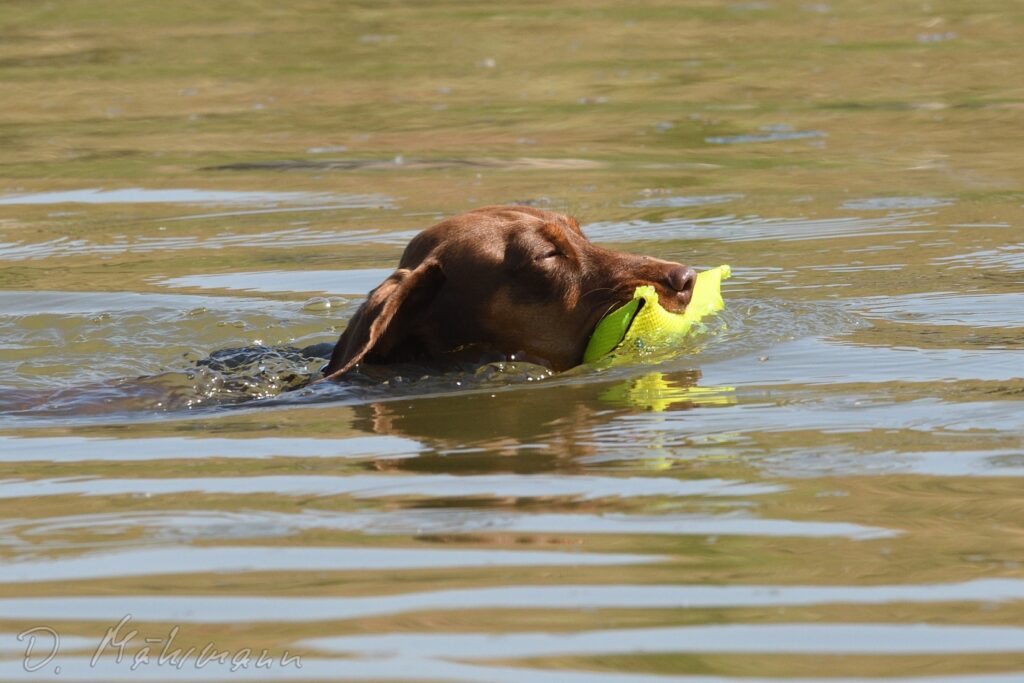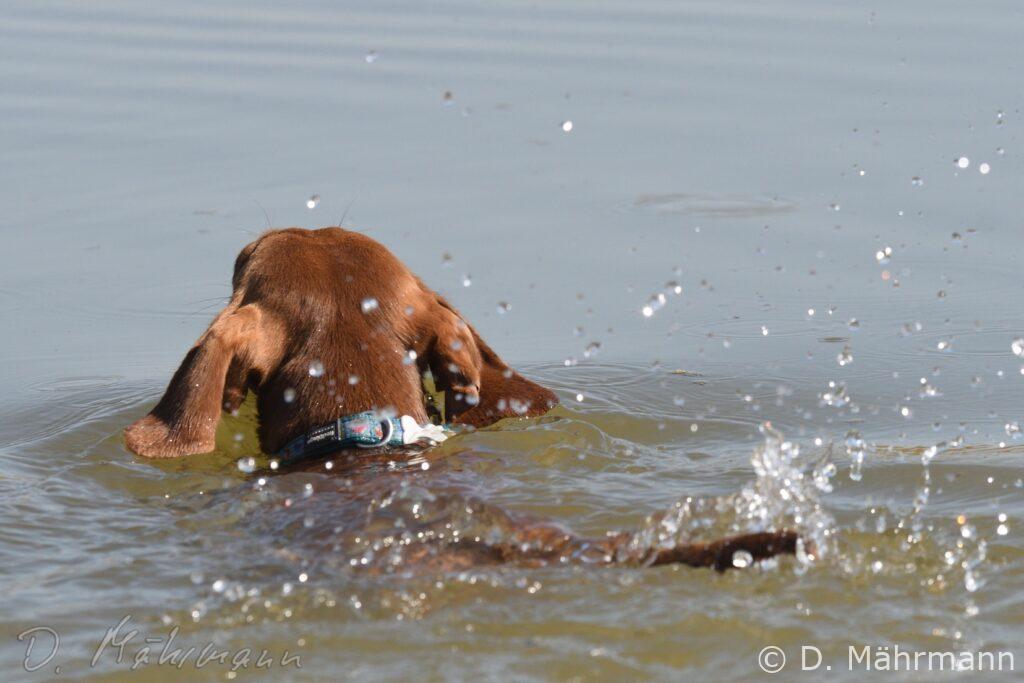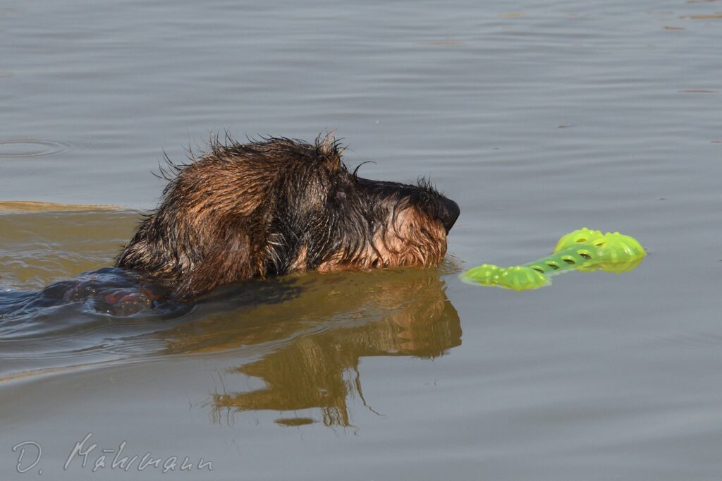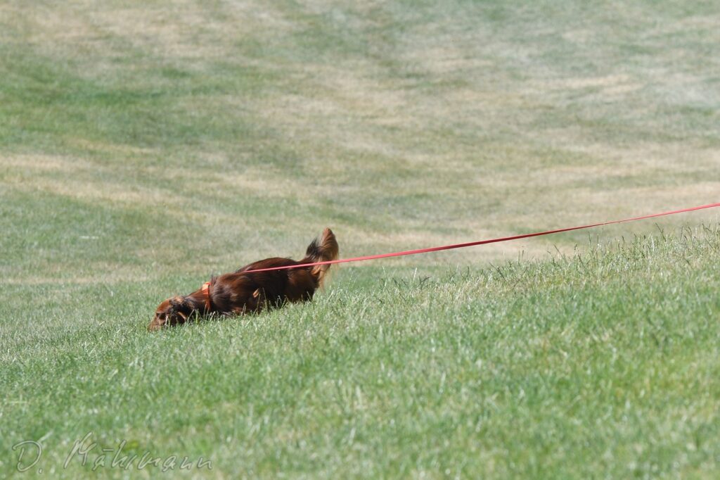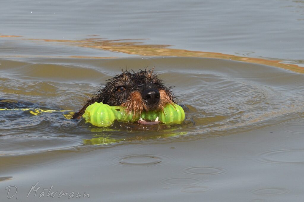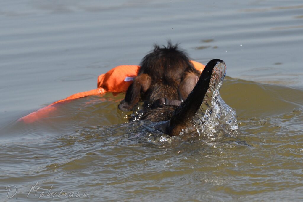Aufgrund des heißen Wetters starteten wir an diesem Samstag schon um 8 Uhr mit unserem BHP-Kurs. Auf dem Programm stand die Hundeführersuche und die Wasserfreude. Es ging (teilweise halsbrecherisch 😉 ) durch nasse grüne Wiesen, über kurzgemähte, trockene Rasenflächen hinein ins kühle Nass. Die wassererfahrenen Teckel zeigten wie es geht, und die noch nicht so erfahrenen Hunde machten es ihnen nach.