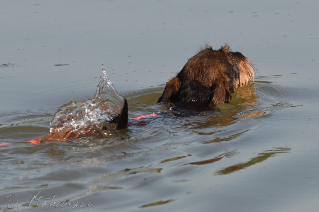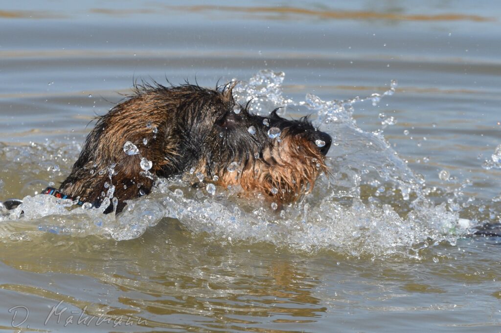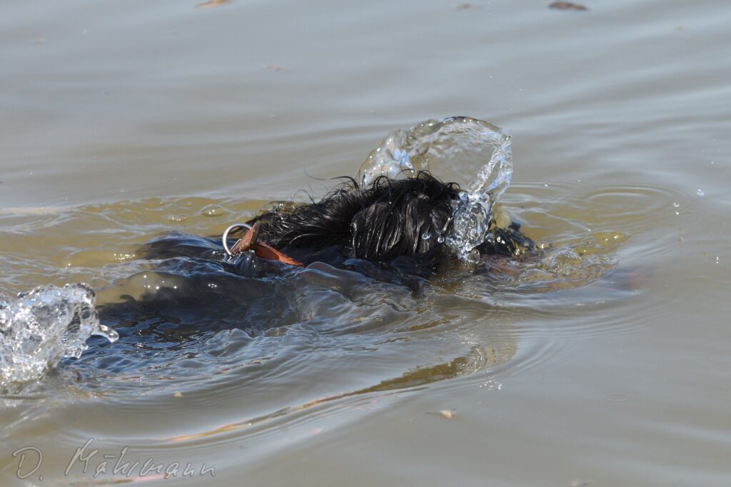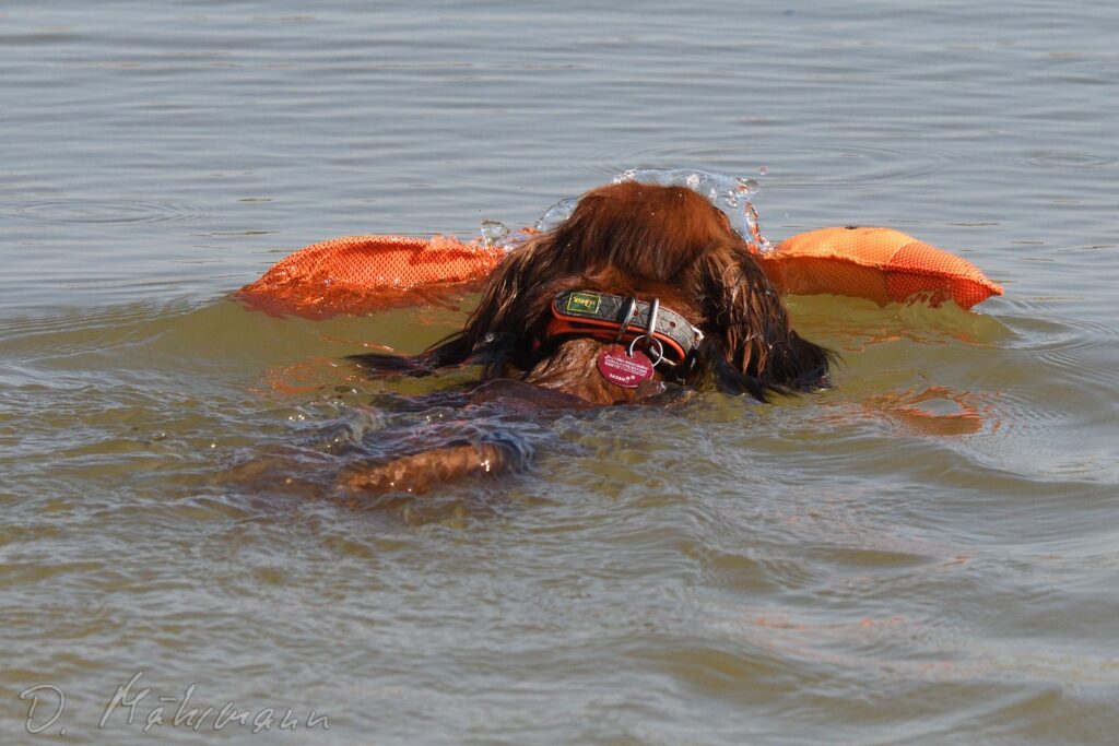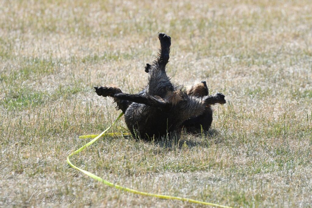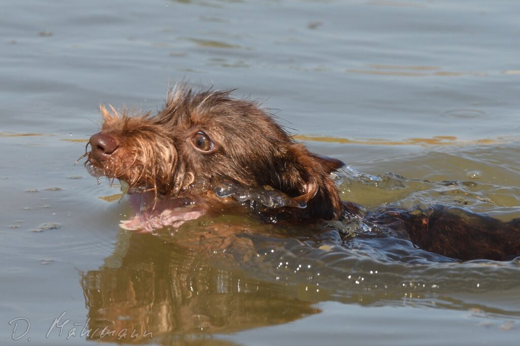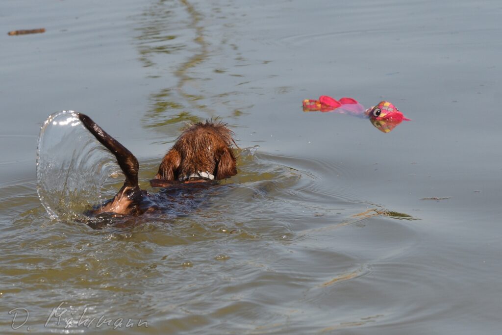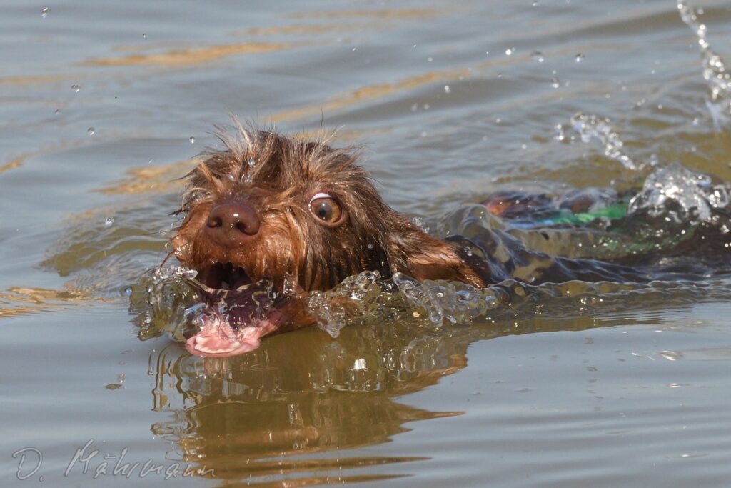 Aufgrund des heißen Wetters starteten wir an diesem Samstag schon um 8 Uhr mit unserem BHP-Kurs. Auf dem Programm stand die Hundeführersuche und die Wasserfreude. Es ging (teilweise halsbrecherisch 😉 ) durch nasse grüne Wiesen, über kurzgemähte, trockene Rasenflächen hinein ins kühle Nass. Die wassererfahrenen Teckel zeigten wie es geht, und die noch nicht so erfahrenen Hunde machten es ihnen nach.