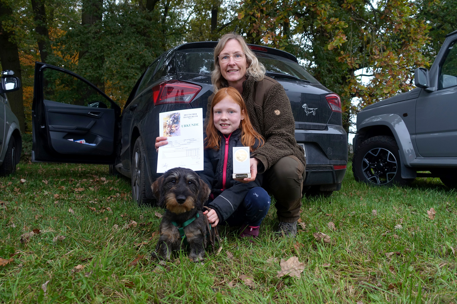 Sieben Teckel waren zu unserer Herbstspurlautprüfung gemeldet, sechs bestanden, drei davon im ersten Preis. Tagessiegerin wurde Quidie vom Sauern Grund. Herzlichen Glückwunsch und Waidmannsheil!