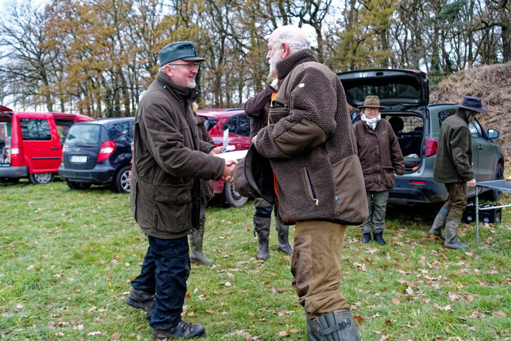 Am 30.11.2025 traten zwei der vier gemeldeten Gespanne zu unserer Vielseitigkeitsprüfung an. Geprüft wurde die Schweißarbeit, der Gehorsam mit Führigkeit, Ablegen und Schussruhe, Benehmen am Stand. Anschließend stellten die Teckel ihre Stöberarbeit unter Beweis. Danach ging es über Felder und Wiesen zur Spurlautarbeit. Beide Teams bestanden die Prüfung. Ralf Kloster mit Carlotta von den Kelzer Teichen FCI zeigten hervorragende Arbeiten und wurden Tagessieger.